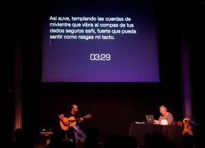 Sucedió en la fábrica de creación Fabra i Coats el pasado 1 de junio. Una vez más, la gente de la asociación “Escritura en vivo” volvieron a confiar en mí para ser el maestro de ceremonias de su Slam de Escritura, que esta vez tenía como tema inspirador la música. Fue una noche llena de sorpresas en la cual la primera parte se alargó un poco debido a problemillas técnicos, pero a aprtir de ahí fue como un tiro, y dejó los ojos y los oídos de los asistentes llenos de magia y maravilla. Aquí van algunas de las fotos del evento, realizadas por Mar Perla de Barcelona. Recordad que el próximo slam de escritura será el día 2 de julio en el Musei del Disseny…¡y os queremos ver allí!